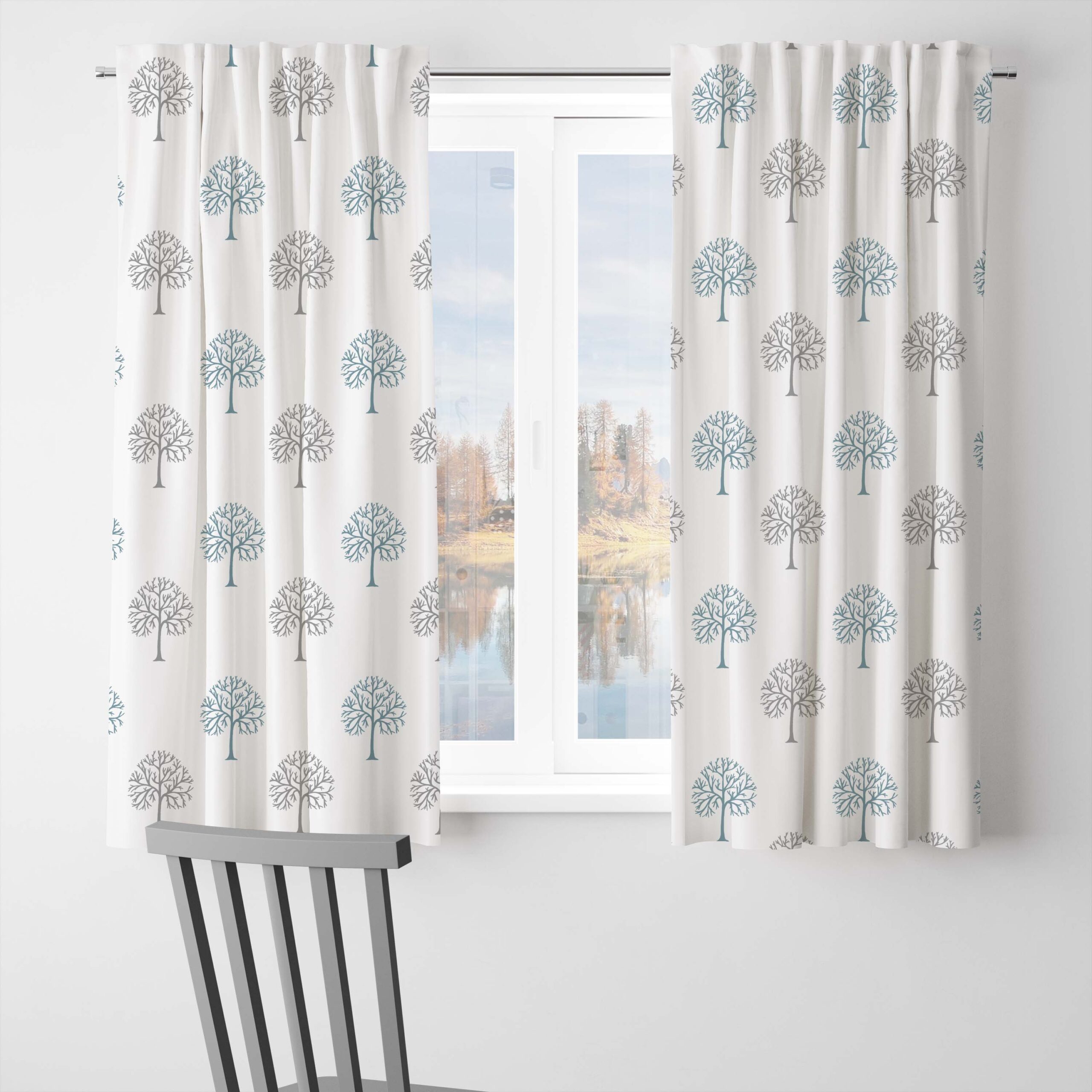 100% Cotton Blue Beech Tree Room Darkening Curtains for Door & Window reduce sunlight( Pack of 2 )